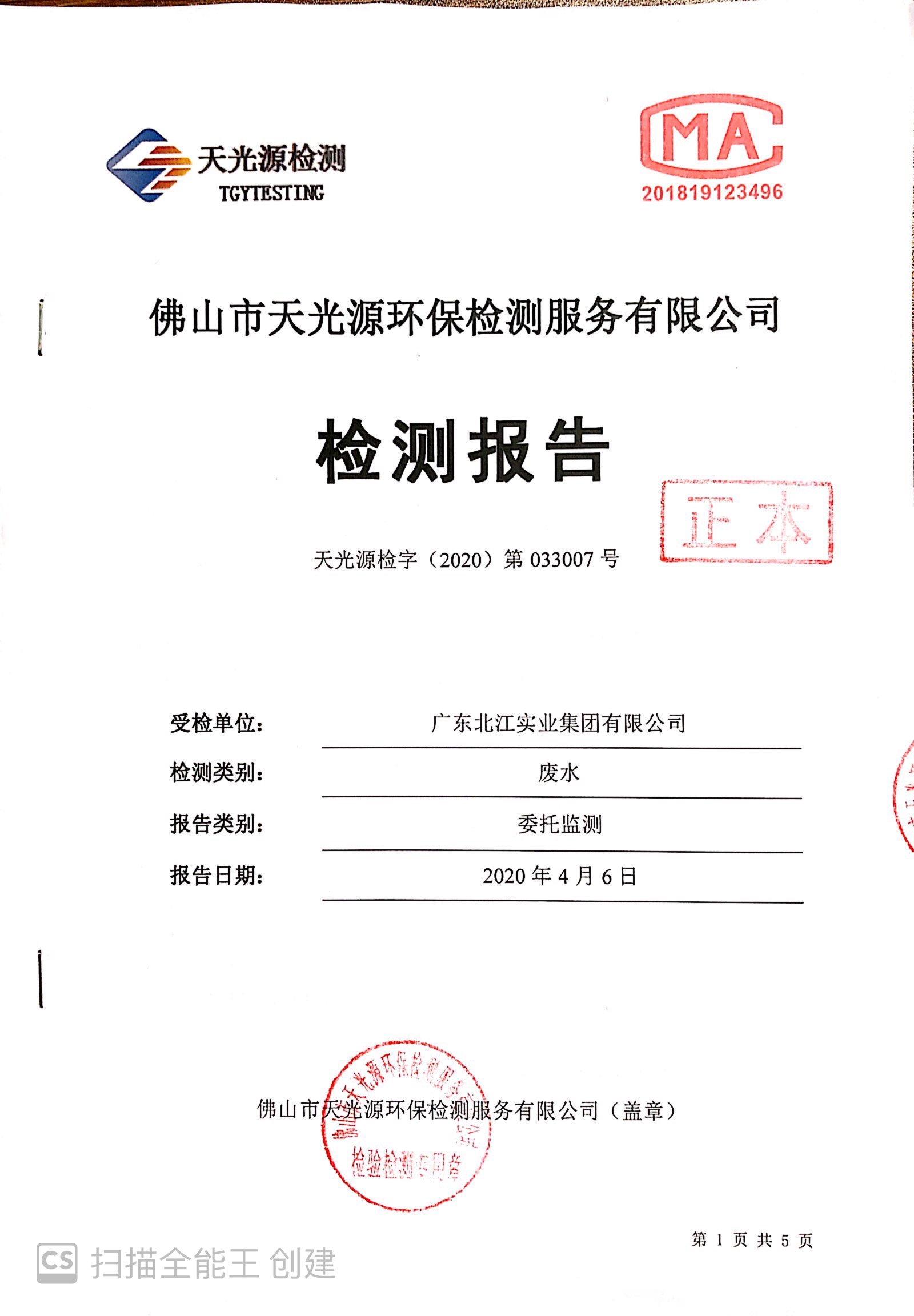 廣東北江實(shí)業(yè)集團(tuán)有限公司廢水檢測(cè)報(bào)告