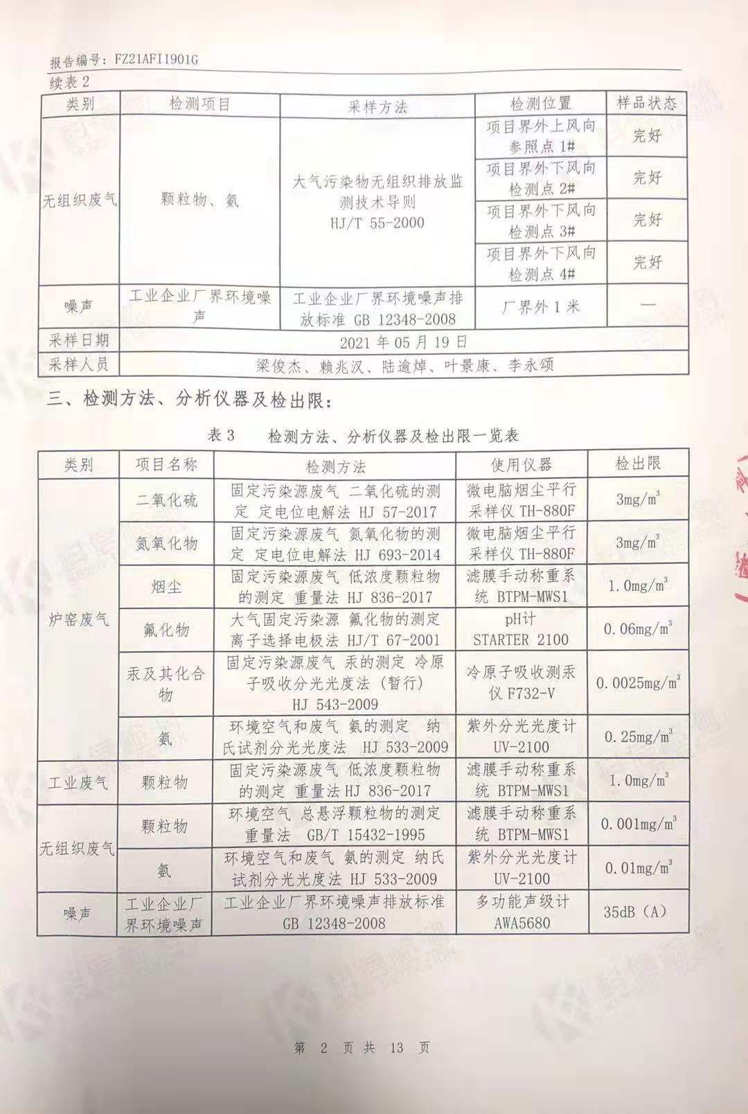 工業(yè)廢氣、窯爐廢氣、無組織廢氣、噪聲第二季度檢測報告